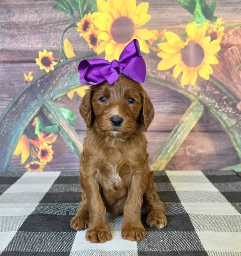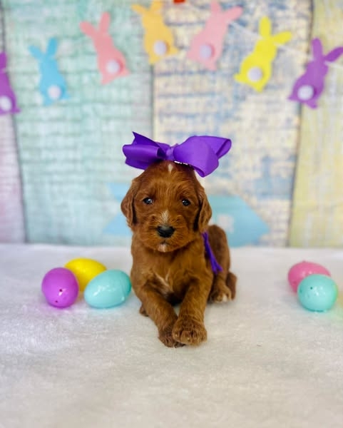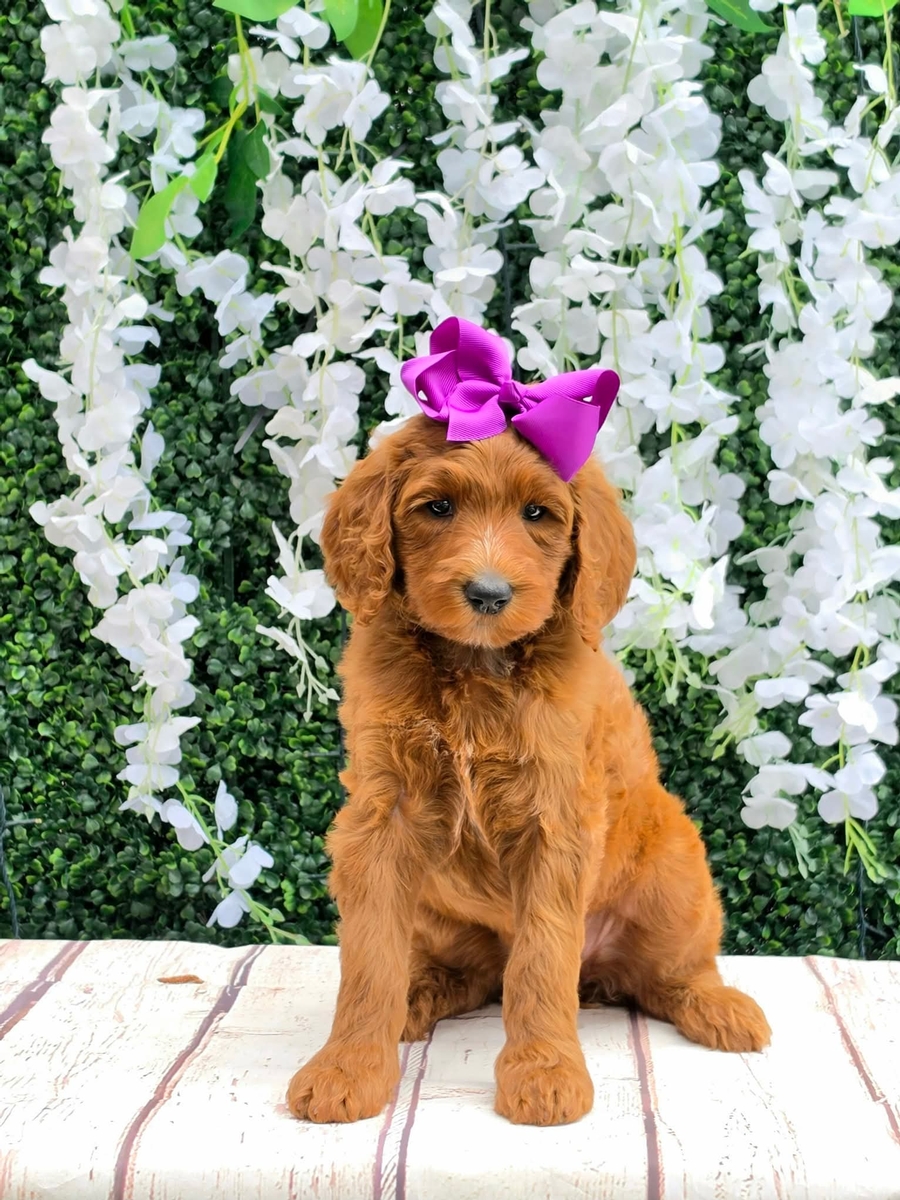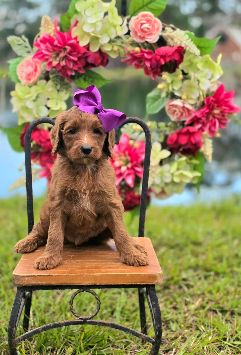 Standard size F1BB, curly, red, hypoallergenic non shedding coat. We saw the vet. Puppies cleared their check ups and all of that information and findings will be in the puppy packets. Eyes/ears all normal, no malocclusions-everyone's bite is perfect, teeth fit together correctly, lung sounds are great and no heart murmur, No umbilical hernias, boys testicles have descended, all hips /joints normal. They received shots, and were micro chipped. We are negative for all known parasites, coccidia, and guardia. Their stools are nice and hard, we have perfect beautiful poops. Our vet was very happy with the puppy findings and approved everyone for their new homes. We stole the show with our cuteness and best behavior. Puppies go home at/ after 8 weeks of age utd on age appropriate shots, dewormer, veterinarian checked, micro chipped, potty training to a doggy door beginning at 4 weeks of age, puppy food - Purina Pro Plan lamb and rice formula small bite or Purina puppy chow beef formula, depending upon availability, blanket with litter scent, tick flea and heartworm preventative for the first month and intestinal parasites preventative for the first three months, completely loved and pre spoiled with a 1-year health guarantee. We offer a discount for puppy training through Baxter and Bella and 1st month free for puppy insurance through Trupanion. Our puppies are raised by the puppy culture protocols. We do a weekly updates with photos, weights and progress reports. Puppy selection process is hosted at our home in Kountze Texas 77625 in person or via FaceTime. Puppies are picked up in person at our residence unless prior arrangements have been made. Our parents are health tested by Embark.